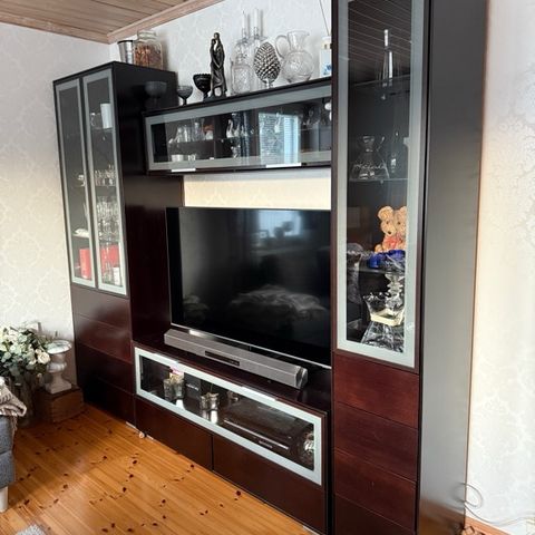 Vitriini 250e, tv-taso 200e, lisäosa 50e. Myydään ensisijaisesti yhdessä 300e. Mielellään myynti ennen joulua.