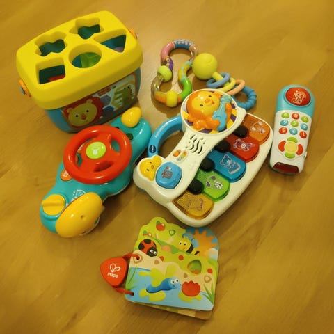 Pyörivä pallo, jolla äänet ja valot. Ääntä voi säätää pienelle ja vähän kovemmalle.
