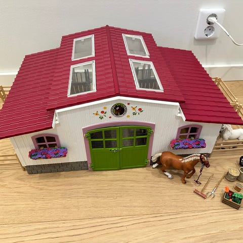 Myydään hyväkuntoinen, hieno Schleich heppatalli + tarvikkeet.