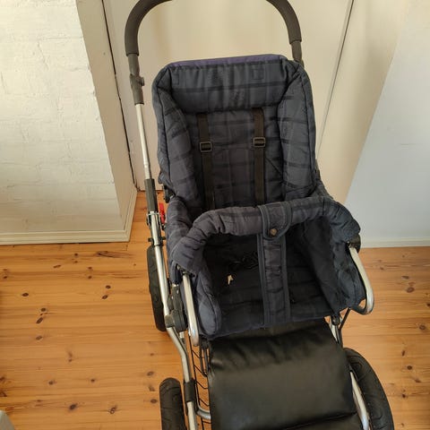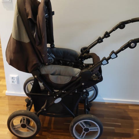 Annetaan korjausta vaativat rattaat. Etupyörät jumittaa ja jarru toimi vaihtelevasti, likaa löytyy, työntöaisassa paljon kulumaa. Voi olla muitakin vikoja joita en nyt muista. Runkoa on nyt viime aikoina säilytetty terassilla, vaunukoppaa ja ratasosaa säliytetty aina sisällä.