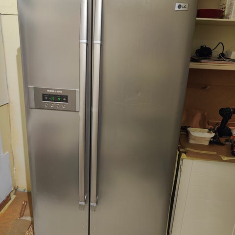 LG Side-by-Side jääkaappi tarjoaa kaksiosaisen säilytystilan, jossa on erilliset ovet jääkaapille ja pakastimelle. Laite on valmistettu kestävästä materiaalista ja soveltuu kodin elintarvikkeiden säilytykseen.