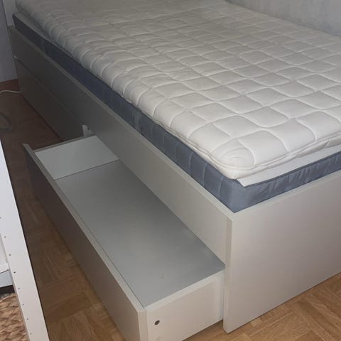 Myydään 2kpl Jysk sangynrunkoa 90x200 cm Ikean jousipatjalla