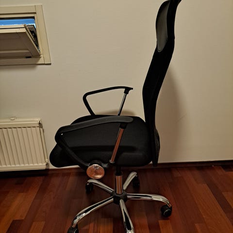 Myydään Jyskin työtuoli. Ehkä ja sähköt toimii, mutta kankaassa tahroja, ks. kuva.