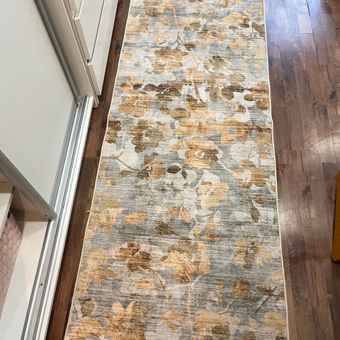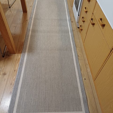 Tästä nyt pikkuhinnalla jollekin oikein kivan värinen trendikäs käytävämatto vaikkapa eteiseen. Siisti ja ehjä, ei ole pesty mutta juuri imuroitu. Rustasta ostettu, ilmeisesti jo poistunut valikoimasta juuri tämä koko.