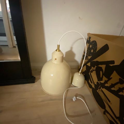Myydään Jyskistä ostettu valaisin. Polttimoiden korkeus naruilla säädettävissä.