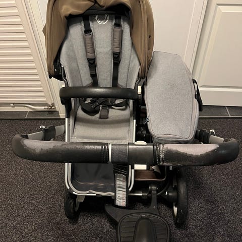 Bugaboon sisarusrattaat kahdella ratasosalla. Yksi kesä kuomu. Seisoma/istuinlauta.
