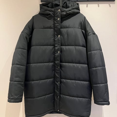 Musta Nanso Kinos -toppatakki. Muhkea ja lämmin. Koko S, joka reilu. Kainalo-kainalo 55cm, lantio n. 58cm, pituus 123cm. Kuin uusi, vain pari kertaa käytetty.