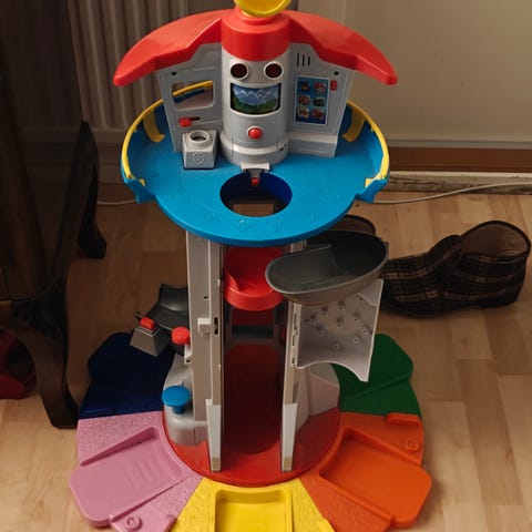 Vahtitornissa on äänet, hissi, liukumäki ja pyörivä autolavetti.