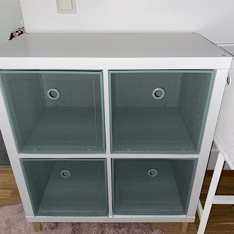 Ikean valkoinen Kallax hylly ja siihen kuuluvat sisusteet (2kpl upotettava kaappi & 1kpl kori). Ovh. yhteensä 100e.