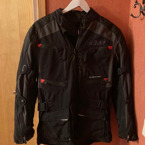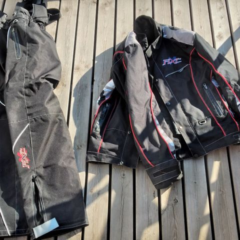 Hyväkuntoinen ajopuku. Housut Sinisalo, koko 50. Toisen lahkeen vetoketju rikki.