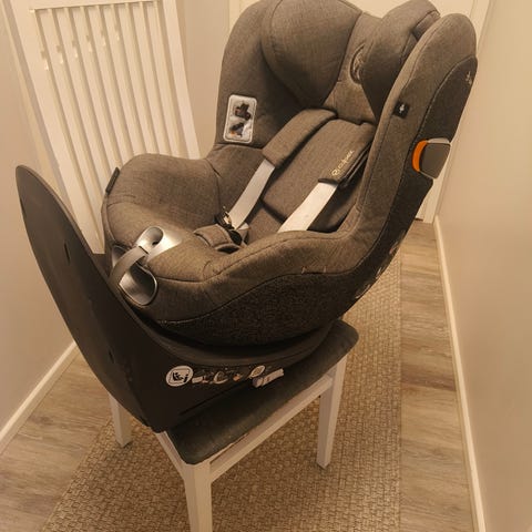 Uutena ostettu (joko v. 2023 tai 2024) turvaistuin Cybex Sirona S2 i-Size, 360-kääntyvä, isofix-kiinnitys.