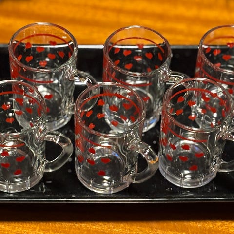 Snapsilasit telineessä. Joulutonttu. 6kpl + teline 10€. Vain nouto.