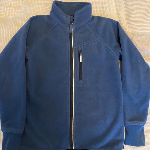 Siistikuntoinen windfleecetakki koossa 140. Pientä haaleaa tummentumaa hihansuissa, muuten oikein siisti. Hajusteeton ja eläimetön talous.