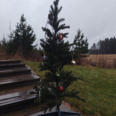 siisti muovikuusi, tarvitsee tilaa vain n 80x80cm