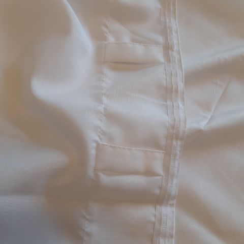 Myydään valkoinen/beige raidalliset sivuverhot. Lyhennetty kokoon n. 100×235, alkuperäinen koko n. 100×250.