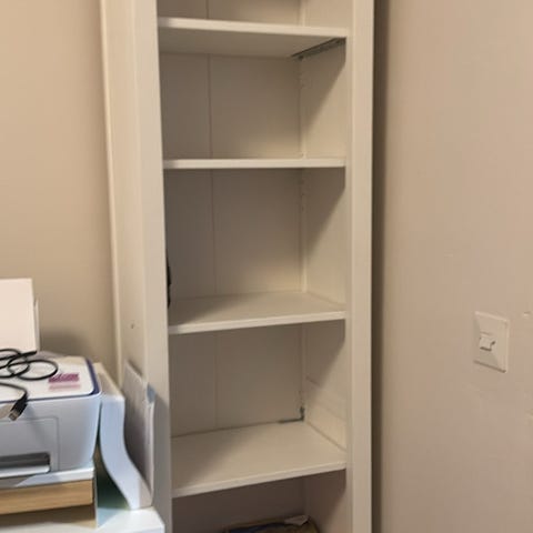 Eket-sarjan vaaleanharmaat pikkuvikaiset hyllyt, takalevyt vain osaksi ehjät läpi laitettujen johtojen vuoksi, parissa kyljessä pienet ruuvin reiät. Yleisilmeentään ovat ok siistit.