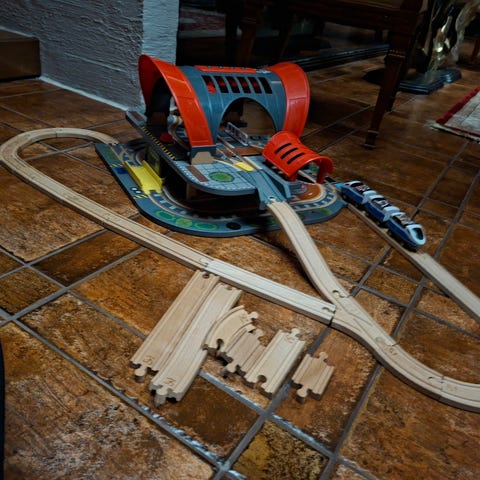 Juna-asema. Moitteeton kunto. Mukaan merkkivalo-osa, valot toimii. Huom! Tästä murtunut pieni osa, ei haittaa leikkimistä. Katso kuva. Myydään yhdessä.
