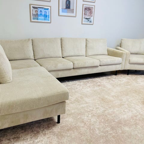 Hakusanat: vakosametti, sohva, istuin, kulmasohva, olohuone, moderni, huonekalut, puujalat, beige, Valmistaja, mukava, käytetyt huonekalut
