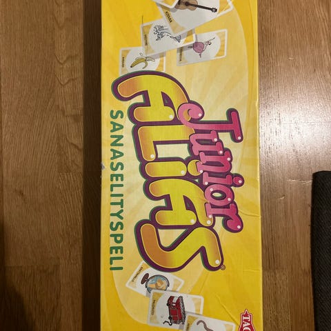 Hauska peli seuraavaan kotiin! Junior Alias Sanaselityspeli lautapeli, jossa on useita kortteja ja pelinappuloita. Peli sopii yli 5-vuotiaille tai vaikka suomea opetteleville! Kortit ovat siistissä kunnossa.