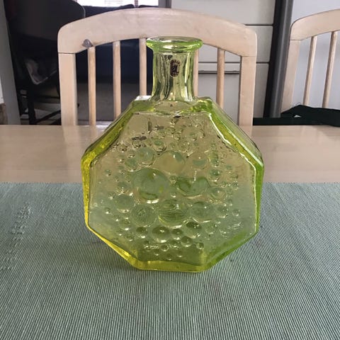 Virheetön,halkaisija 17 cm ja korkeus 11 cm.Väri violetti.Valmistettu v. 1960 pyörittäen puhallettu ja driivattu.