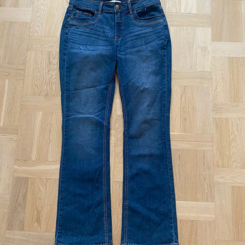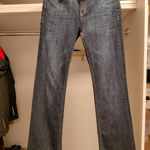 Levikset 32x32 ei aidot, ainakin uskon niin. Pieni rispaantuminen lahkeissa. Muuten siistit ja ehjät.