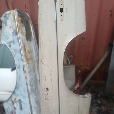 -63 Polaran takaluukku. Löytyy myös etulokasuoja oikea hyvä mutta pintaruostetta ja 2d oik ja vas ovet