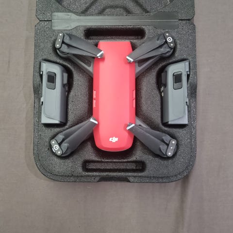 DJI Spark drone sekä kauko-ohjain. Ollut kaapin perällä useamman vuoden, ja toimivuutta ei ole nyt testailtu. Kun laittoi piuhaan, niin valot kyllä syttyivät. Tästä jollekin kopteri vaikka projektiksi edullisesti!