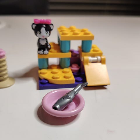 Uuden veroiset kissa ja leikkisetti ja koiranleikkimökki ja koira. Kaikki osat tallessa.