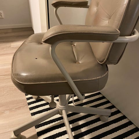 Annetaan Isku Step työtuoli. Kaasujousi ja pyörät pitäisi uusia. Istuimen leveys 50 cm. Vain nouto.