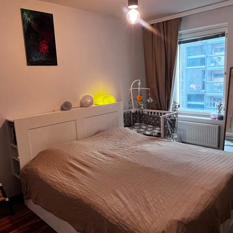 Muuton myötä tarpeettomaksi jäänyt Brimnes-sängynpääty. Toimivassa kunnossa, mutta päällitaso tahriintunut kukkaruukuista ja tarroista.