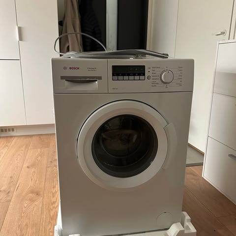 Myynnissä toimiva edestä täytettävä Bosch pesukone. Digitaalinen näyttö, pikä ohjelma ja ajastin.