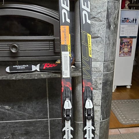 Peltosen kilpakäyttöön valmistamat sukset. Käytetyt, mutta hyväkuntoiset. Näillä suksilla voitettu aikoinaan nuorten SM.