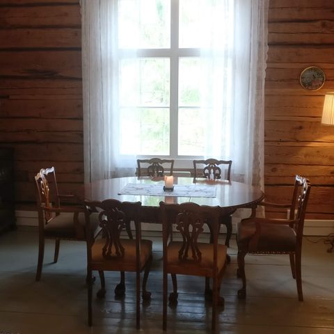 Chippendale pöytä ja kaksi tuolia / nojatuolia. Yhteishinta. Nouto Aura kk.