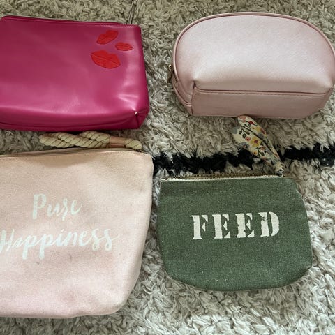 Erilaisia toiletbageja 4 kpl. Sisältöä mm. Unimaski, sukat, korvatulpat, hammasharja….kosmetiikka ei välttämättä kuranttia, koska olleet kaapissa muutaman vuoden. Kaikki pari euroa.