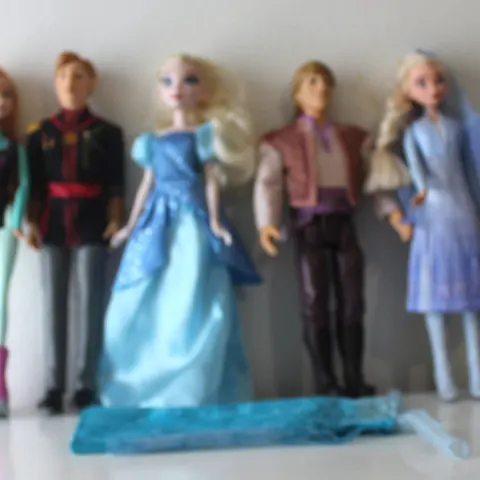 Myydään neljä Barbie-nuken kaltaista nukkea. Yksi merenneitobarbie, kaksi Frozen Elsaa ja yksi barbie, jolta etuhiukset leikattu pois. Toisen Elsan kädessä valo- ja äänitehoste. Vain nouto Vantaan Hämevaarasta. Kaikki yhteensä 6e.