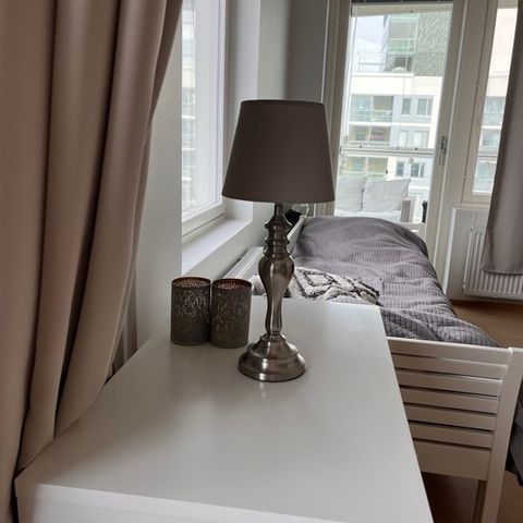 Beigen värinen lampunjalka.