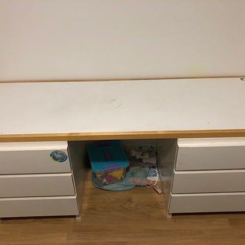 Muurame pöytä-tuoli -setti taaperolle. Kunto hyvää Muuramen laatua eli tukeva vaikka lapsen kiivetä. Pari kolhua kulmissa, katso viimeinen kuva - siinä kolhun lisäksi näkyy maalarin teippiä jota en huomannut ennen kuvan ottamista. Meillä pidetty piirustuspaperit maalarinteippillä kiinni niin lapsen helppo piirtää. Muutenkin kuvassa näkyy teipin liiman jälkiä joita en huomannut pestä.
