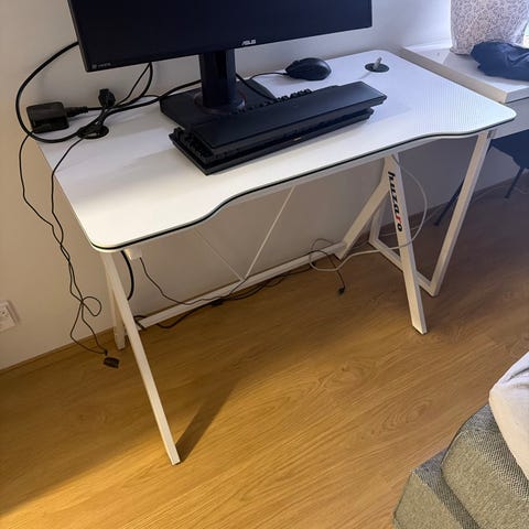 Pöytään saa kiinni pistorasian missä 2 pistoketta ja 2 USB:A porttia (joista toinen valoille jos niitä aikoo käyttää)