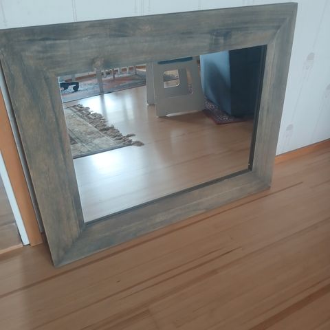 Peili, jossa on tummanruskea rustiikkinen puukehys. Sopii seinälle ripustettavaksi pystyy tai vaakaan. Vain nouto.