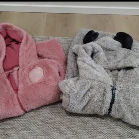 Hyväkuntoinen, puhdas paketti jossa yökkäri, pehmeä aamutakki ja tossut, n. 130-140 cm. Nouto, käteinen tai mobilepay, 2 €.