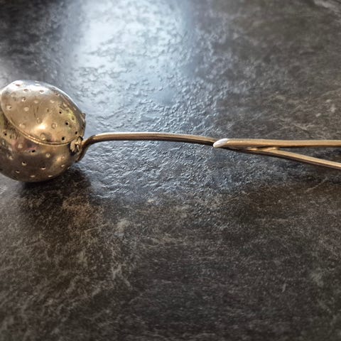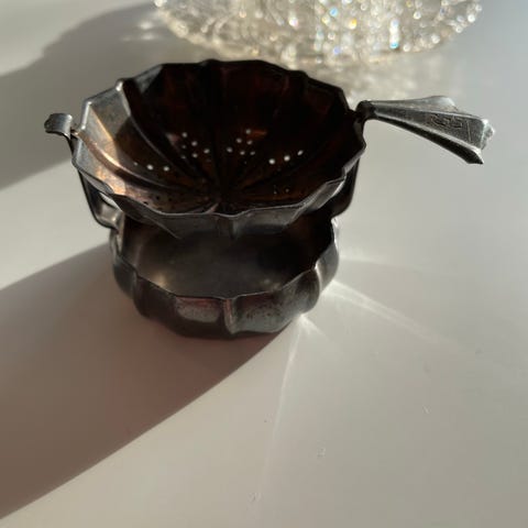 Hieno vanha teesihti, jonka tuulimylly on mekaaninen ja se pyörii kun lapaa kevyesti työntää. Sihti on hopeoitu ja leimattu.