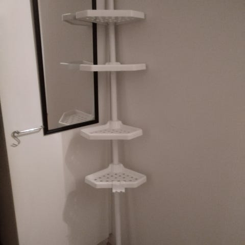 Suihkuun metallinen kulmahylly. Käyttämätön. Voi laittaa seinään kiinni (ruuvit tulee mukana) tai seisoo omilla jaloilla. Uusi/käyttämätön.