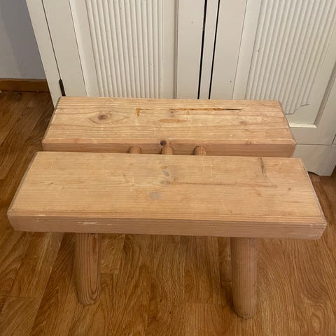 Puinen ja valkoinen, ollut koristeena makuuhuoneessa.