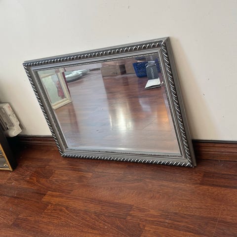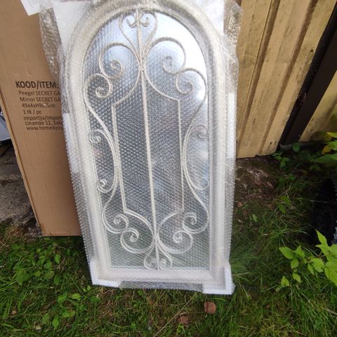 Kaunis peili hopeisilla koristeellisilla reunoilla.