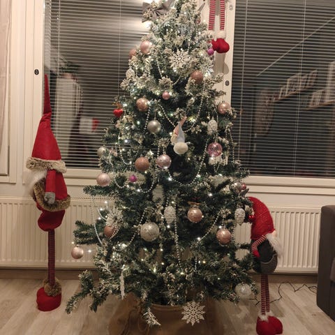 Muutaman joulun käytössä ollut. Myydään pois pienemmän tieltä. Kuvat edellisiltä vuosilta(en viitsi tätä varten koota sitä), koristeet ei kaupan. Kaikki oksat tallella mutta pakkausta kuuselle ei enää ole. Vain nouto. Mmm