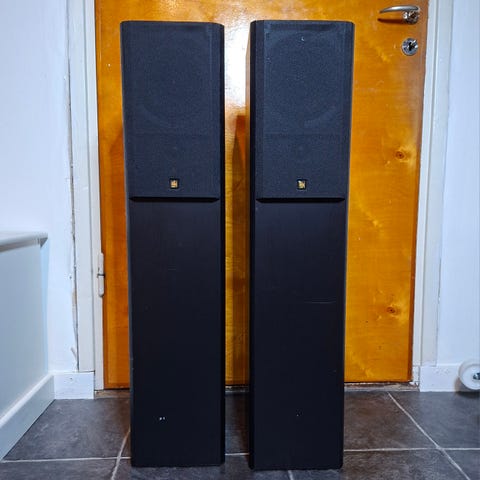 Pioneer A-401 vahvistin mustassa värissä. KEF C42 kaiuttimet, joissa on useita kaiutinelementtejä ja harmaa etupaneeli.