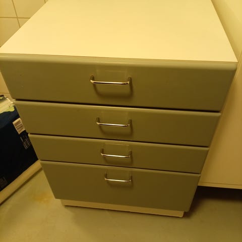 2 laatikostoa, noin 30 vuotta vanhat, ovat olleet varastossa. Hyvät ja tukevat säilytyslaatikot / kirjoituspöydän laatikostot esim varastoon tai työhuoneelle. Luulen että laatikot ovat kuvissa väärillä paikoilla, siksi raot eri kokoiset. Joitain pieniä käytön jälkiä mutta yleisilme siisti. Yhteensä 50€ tai ehdota hintaa.