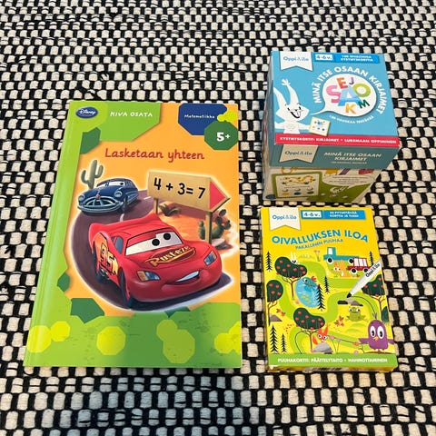Autot clementoni match and learn oppimispeli. Sisältää yhdisteltävät kuvakortit ja elektronisen kynän, joka päästää äänen, kun valitsee oikean vaihtoehdon yhdistettyjen korttien toiselta puolelta. Meidän lapsi tykkäsi tästä kovasti.