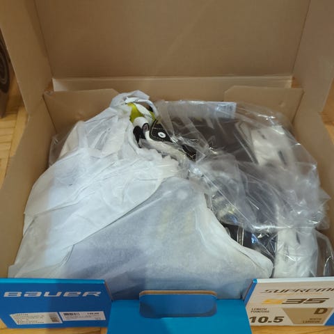 Eli nyt suoraan käytöstä (nauhakln näytti olevan katki, eli uusille nauhoille tarve) myyntiin ainakin poikamme mielestä todella hyvät jääkiekkoluistimet. Nilkan suojat ehjät, sisäosissa pientä kulumaa ylhäällä, mutta pääosissa kankaat ehjät.