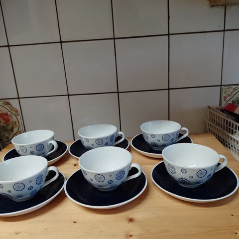 Arabia Sohvi hyväkuntoiset ja ehjät kahvikupit ja lautaset 3 settiä.